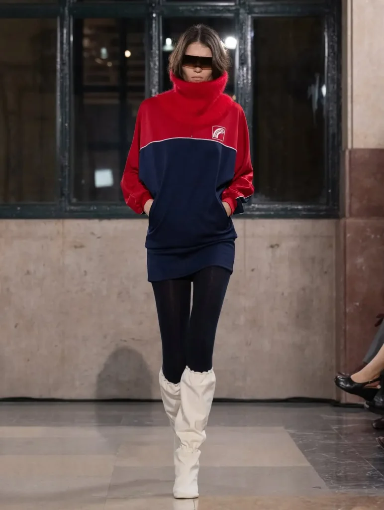 Another boot we had our eyes on was at MM6 Maison Margiela. An off-white, knee-high boot that scrunched at the top, it was styled with a mini dress and leggings, a quintessential 2010s piece of fashion. For this region however, we can see the pair work with jeans, balloon pants, and A-line knee-length skirts.