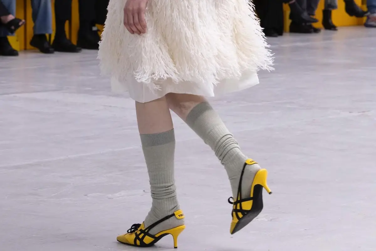 A shoe trend that’s sure to appear this Autumn-Winter season is laced heels. Onitsuka Tiger already began the trend with its sneaker kitten heel, but while that felt like a natural remix, heritage houses are doing the same from scratch. Prada featured plenty of heels with laces at the toe, as well as boots that laced all the way up à la 2012 Converse. Marni had similar footwear, where heels, boots, and ballet flats all came laced up in bright, vivid colours. Is this the runways telling us to strap in? Time will tell.