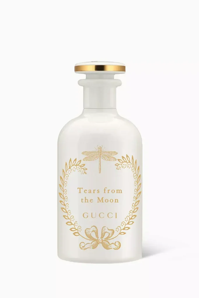 A bouquet of lilly of the valley, stephanotis and white peony. This is a fragrance that symbolizes the lightness of spring captured delicately in a dragon fly adorned bottle. Beautiful inside out.