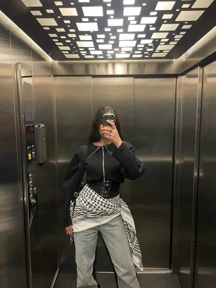 When it comes to Arab-Western cross-cultural fashion, a trend we’ve been loving is seeing how traditional accessories have been reimagined. With the popularity of the keffiyeh, the garment alone has gone beyond its initial purpose. Standing for broader cultural meaning, the fabric is commonly styled as a belt or is draped along the torso, a complete shift from being a headdress as it was originally intended.