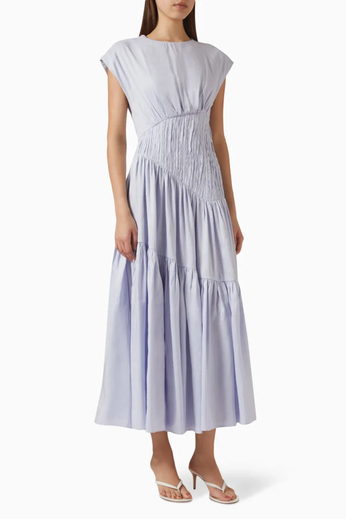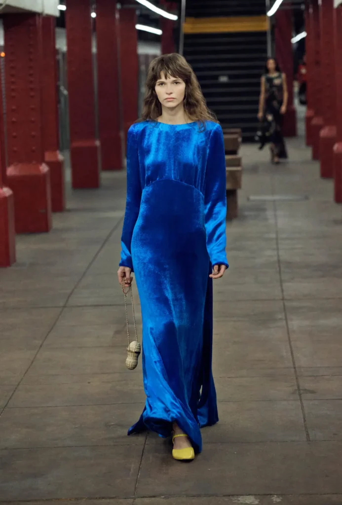 Culturally, it’s no surprise either. Ice Blue or Cobalt Blue/Yves Klein Blue have been appearing on the runways in small doses since 2024. Now in 2026, the colour is harder to ignore. Chanel’s SS26 and Métiers d’art 2026 both showcased the hue in different forms—a pale blue cropped shirt over a tomato red skirt and a punchy cobalt blue gown in velvet. Celine’s SS26 showed us how blue has taken over red as a pop of colour. And Jil Sander SS26 featured the colour in the maison’s typical minimalist approach over cropped tops, shirts, coats, and dresses. Coach and Jacquemus held a curated Blue Edit on their website for Ramadan, featuring midnight blue pieces, including limited edition bags. Speaking of bags, Loewe introduced Stellar Blue, a new colourway across their Amazona, Flamenco, and Bilbao styles.