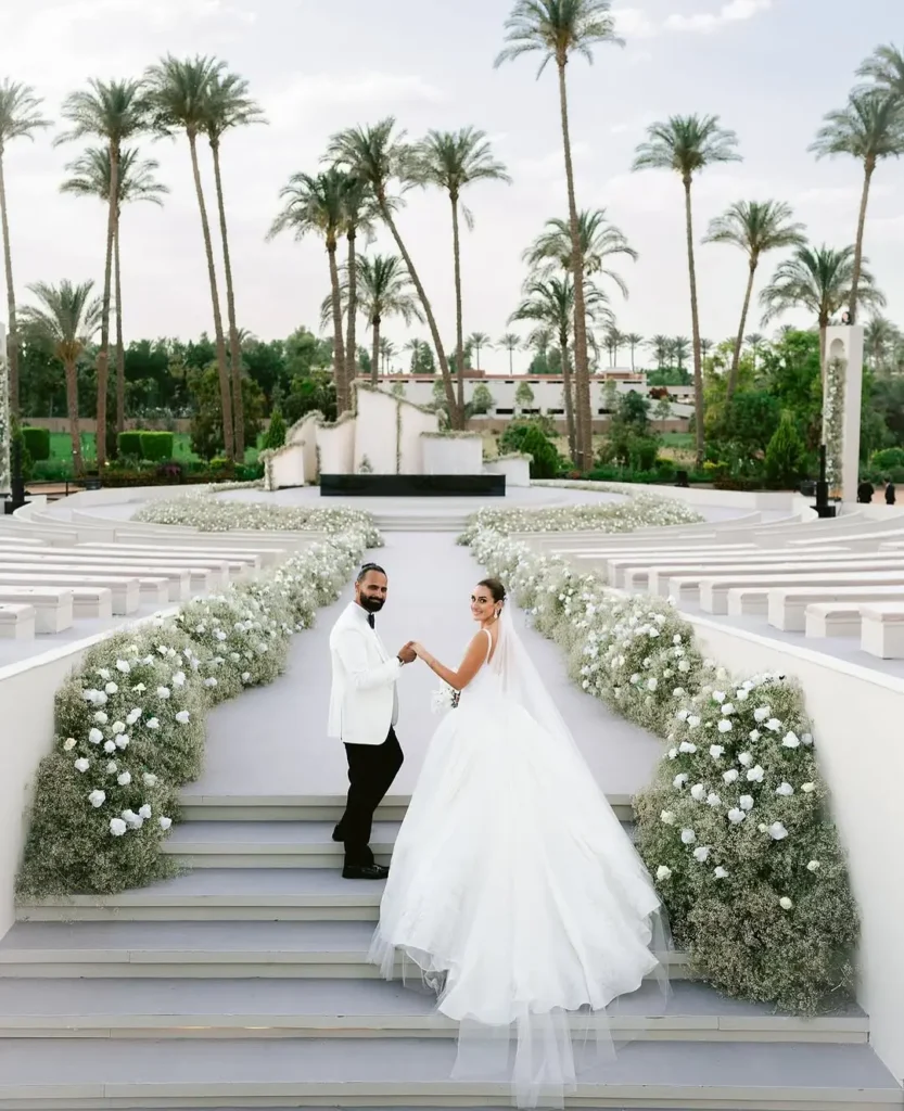 If Mamma Mia! didn’t convince you to have Greece as your wedding destination, then allow Amina Khalil to do the honours. While the Egyptian actress keeps her private life, well, private, her wedding was one of the few times that we got a peek into her inner world. Following an intimate ceremony at Cairo’s Muhammad Ali Palace on Roda Island, the actress and her new husband, photographer Ahmed Zaatar, transformed a villa in the Glyfada area of Athens into an elegant celebration. Surrounded by palms, the sea, and the sun, you can see just how one can achieve an effortless wedding glow here!