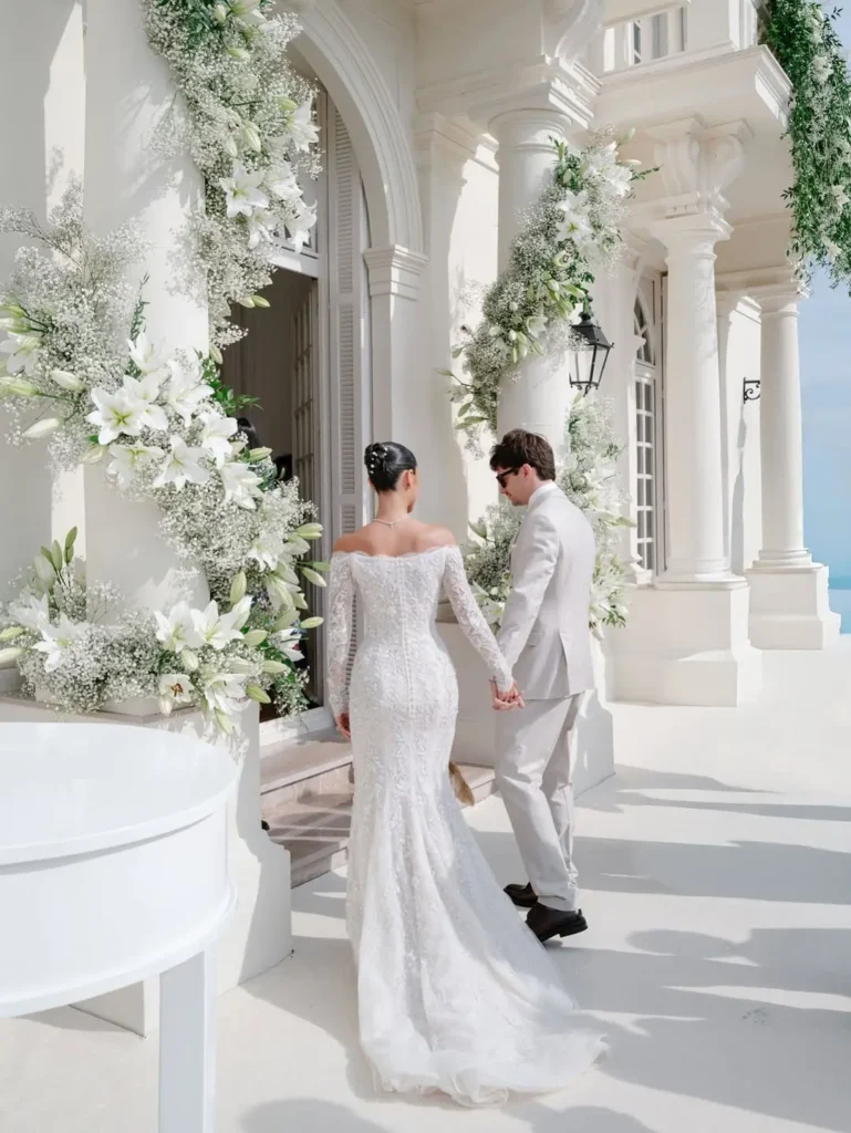 Speaking to Soigné right before celebrating her day, the star behind Youmi Beauty chose the picturesque Villa Erba at Lake Como for her grand affair. According to the bride, it was the perfect regal estate, adding that fairytale-like charm that she had dreamed about when planning her wedding. The destination itself has been a longtime favourite of many celebrity couples, including George and Amal Clooney, Emily Blunt and John Krasinski, and Bollywood’s Deepika Padukone and Ranveer Singh.