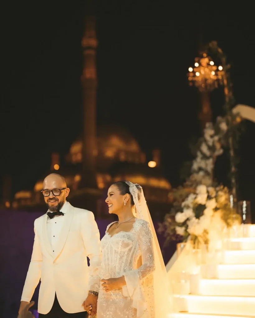 If daytime weddings aren’t your thing, then a trip to Egypt means you can skip the hot and humid skies and have a lovely evening affair. Actress Jamile Awad and film editor Ahmed Hafez did so at the heart of Cairo at Salah Al-Din Citadel. Bringing together the who’s who of the Arab film industry, the pair celebrated surrounded by their loved ones and the comforting presence of Islamic architecture.