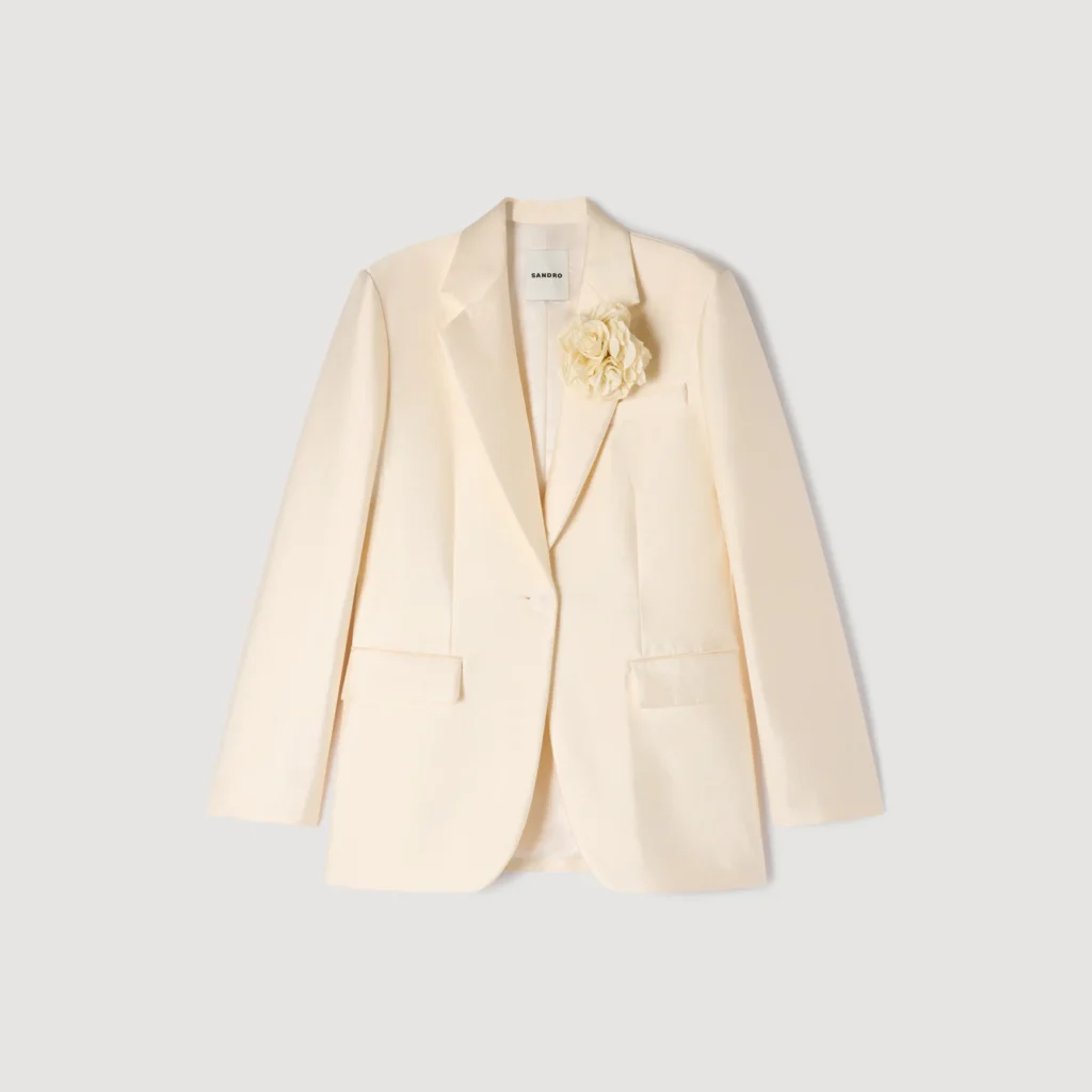 Sandro | Myrella Satin Jacket With Flower Detail Cream