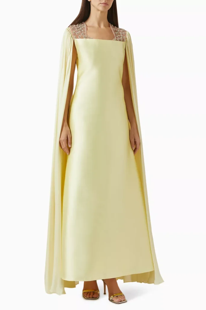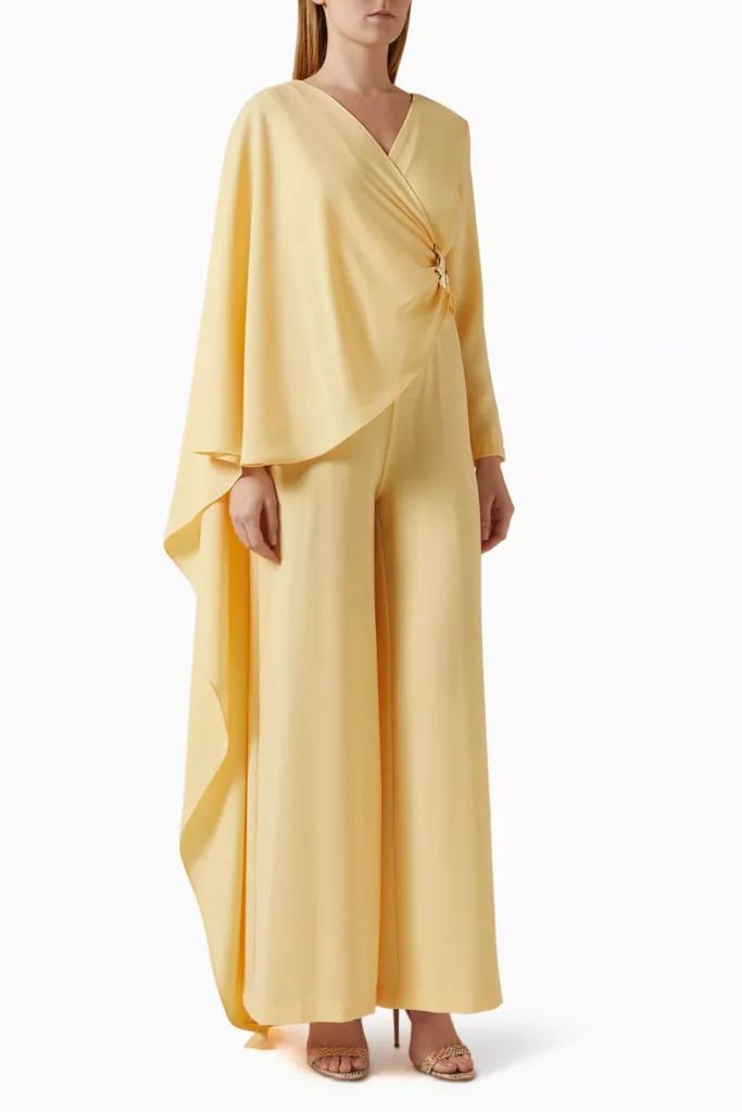 People in the region need no excuse to escape from the heat and humidity of the summer months, but a destination wedding provides a pretty neat one. For this event, opt for gowns and jumpsuits that easily transition from day to night. Cape styles keep things loose and breezy, which allows for circulation that keeps the body cool. Whereas shiny fabrics like silks and satin are an easy pick to bring an oomph without doing too much.